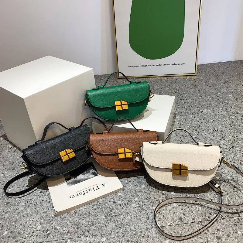 Elegant and stylish semicircle design messenger bag made of high-quality PU leather for women.