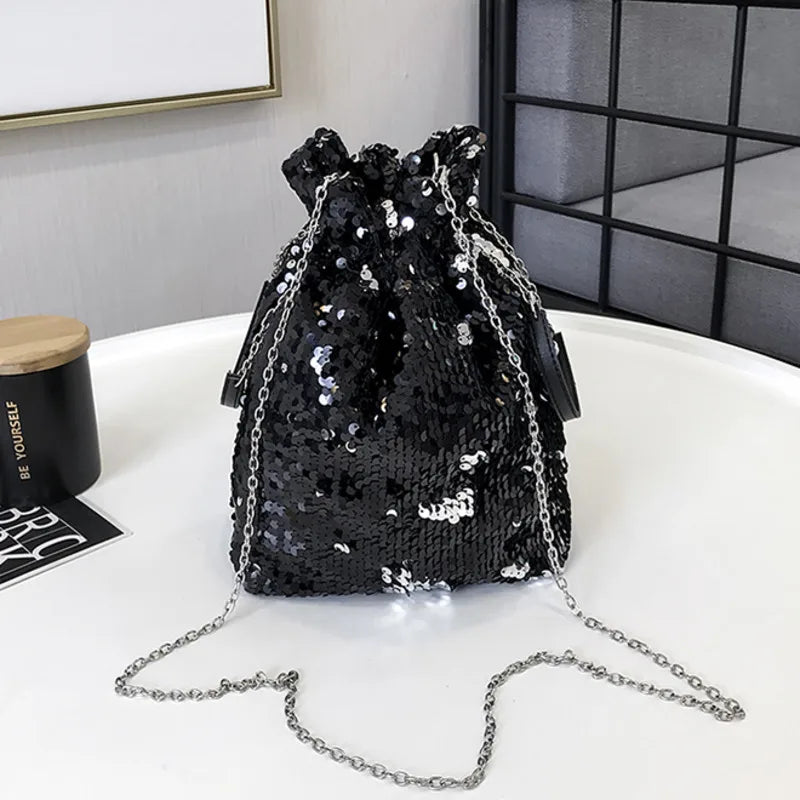 Sequin Bucket Handbag Chain Shoulder Crossbody Bag Female
