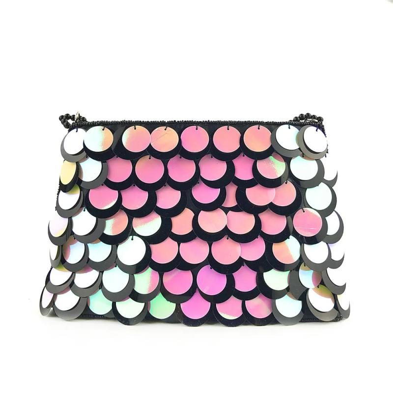 - Stylish sequined clutch purse with beaded chains