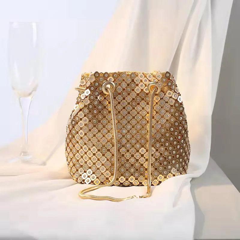 Sequins Chain Woven Evening Clutch Bag Travel Shoulder Handbag