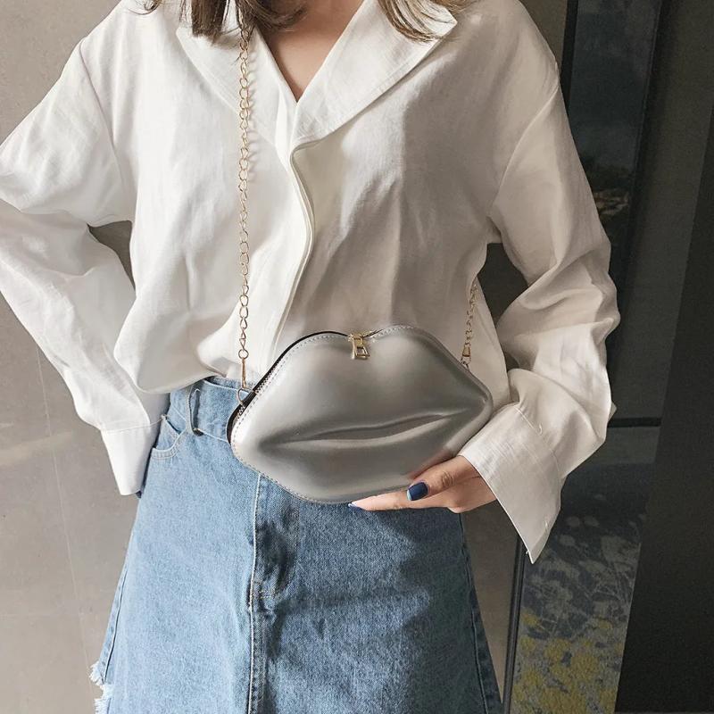 This fashionable handbag features a sexy lips design made with high-quality PU leather. It can be carried as a clutch, purse, shoulder bag, or crossbody messenger bag.