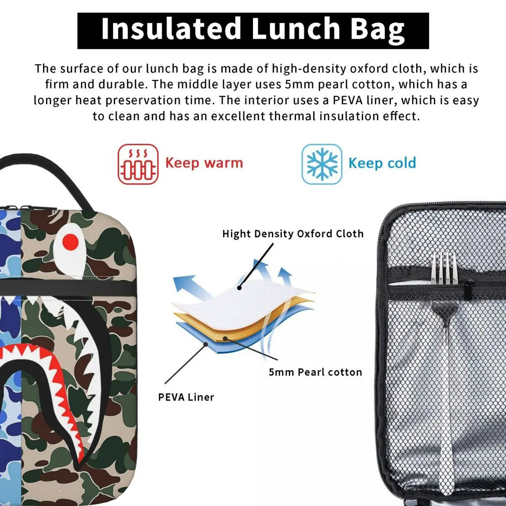 Shark Teeth Camo Insulated Lunch Bag - Camouflage Reusable Cooler