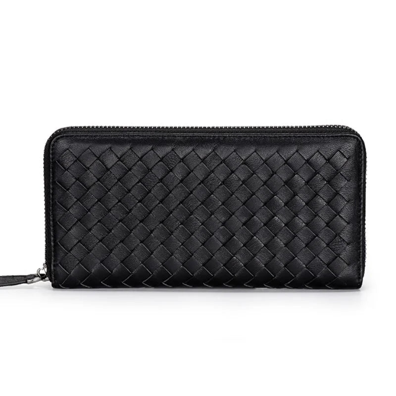 Sheepskin Knitting Leather Wallet for Women, Long Clutch with Cell Phone Bags