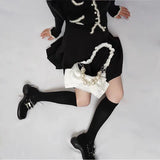 Shoulder Bag Women Sweet Bowknot Chains Crossbody Zipper PU Leather Handbag