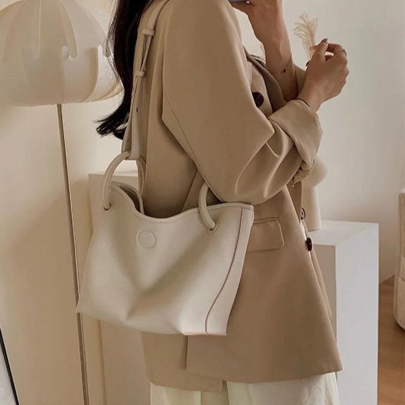This stylish shoulder bag is made of high-quality PU leather. It features a soft design with a large capacity, perfect for carrying all your essentials. The top-handle and cross-body straps allow for versatile carrying options.
