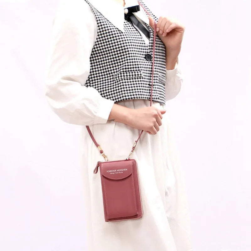 This versatile shoulder wallet for women doubles as a phone wallet, purse, handbag, and clutch. It features multiple compartments and a detachable shoulder strap.