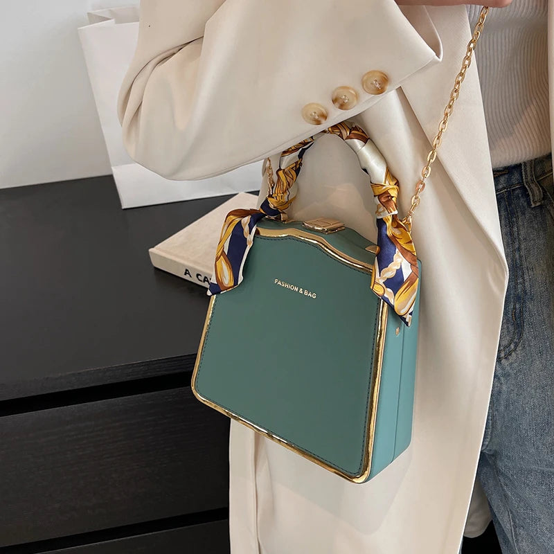 Description:Add a stylish touch to your party outfit with this elegant silk scarf handle clutch. Perfect for carrying your essentials, this purse can be worn as a shoulder bag with its chain strap.Features: Elegant silk scarf handle design Perfect for parties and special occasions Can be worn as a clutch...