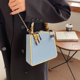 Add a stylish touch to your party outfit with this elegant silk scarf handle clutch. Perfect for carrying your essentials, this purse can be worn as a shoulder bag with its chain strap.