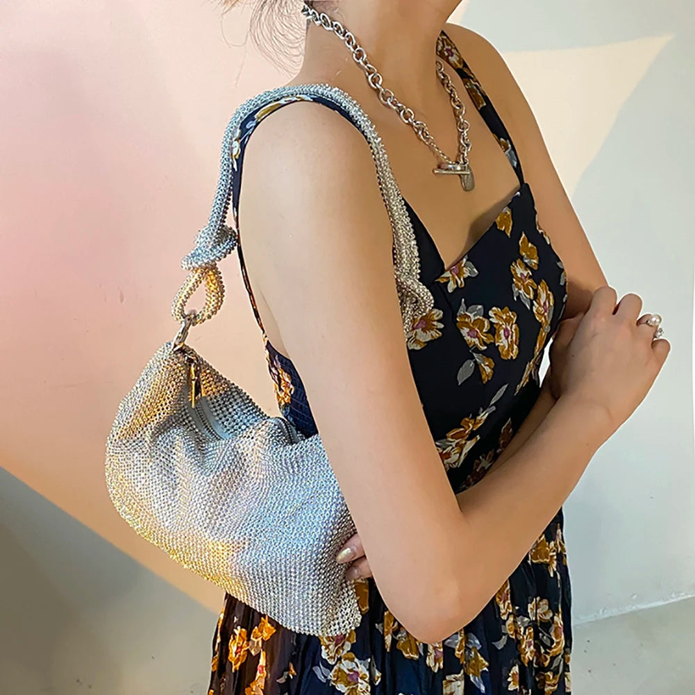Silver Crystal Evening Clutch Bag Wedding Party Purses Shoulder Bags
