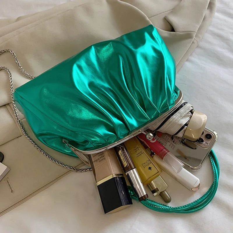 Make a statement with this silver laser sparkles clutch bag that is perfect for parties. The crossbody chain shoulder strap adds a touch of glamour to your outfit.