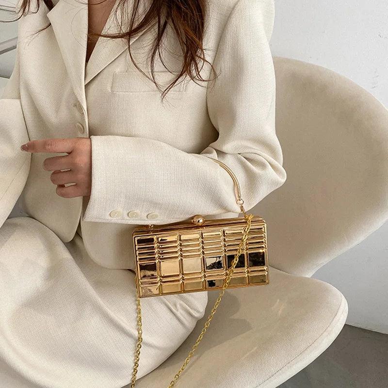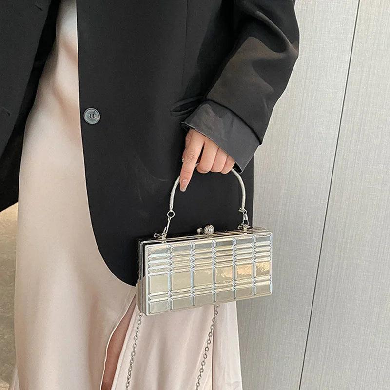 Silver PVC Box Bags Shoulder Bag Party Evening Clutch Chain Crossbody Bags