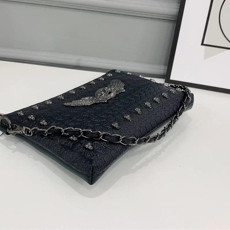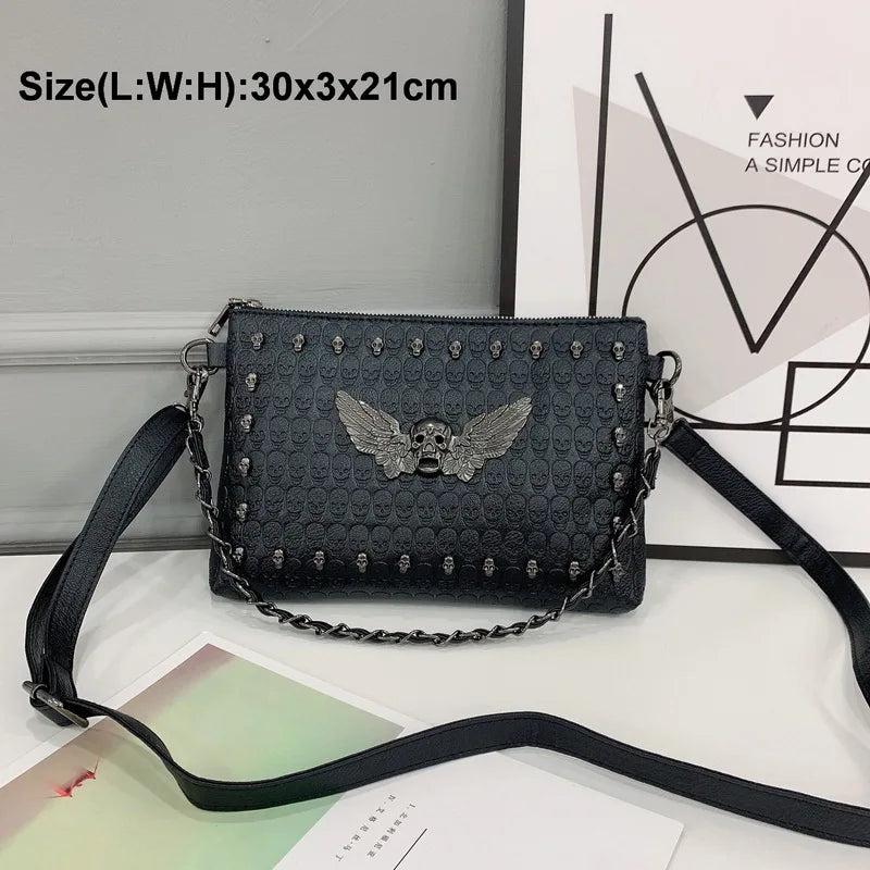 Skull Messenger Bag Chain Shoulder Bag PU Leather Handbags