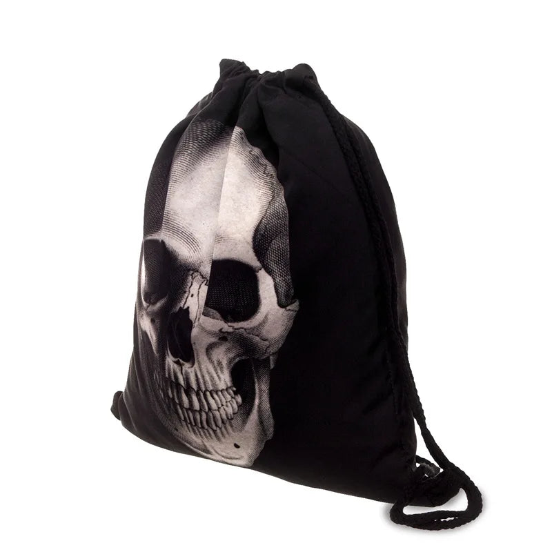 This high-end backpack features a stylish skull pattern and drawstring closure. It is perfect for storing cosmetics, shoes, and other essentials. The bag can be worn as a shoulder bag or as a backpack, making it versatile and convenient.