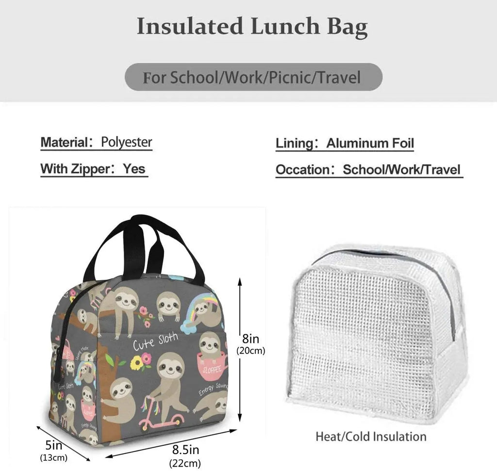 Keep your lunch fresh and cool with this adorable sloth-themed insulated lunch bag. Perfect for work, school, or picnics, this leakproof cooler lunch box is reusable and easy to carry.