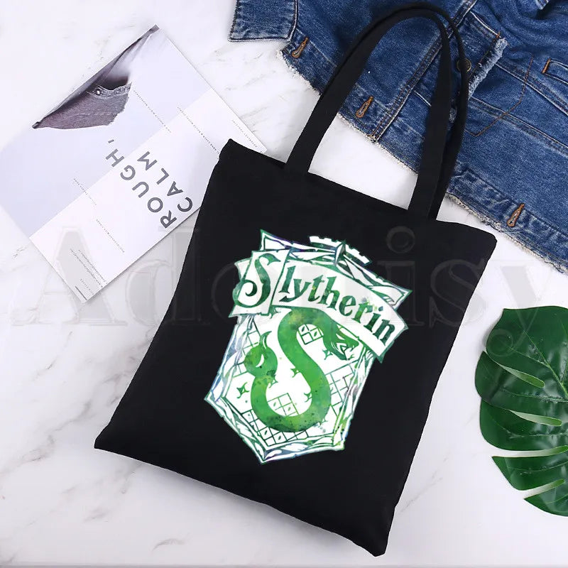 Slytherin Reusable Shopping Bag Canvas Tote Eco Bag Cartoon Shopper