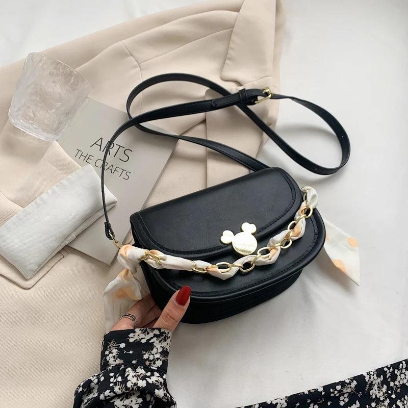 Elevate your style with this fashionable small chain flap shoulder bag. It can be used as a tote or crossbody bag and comes with stylish scarves. Perfect for any occasion!