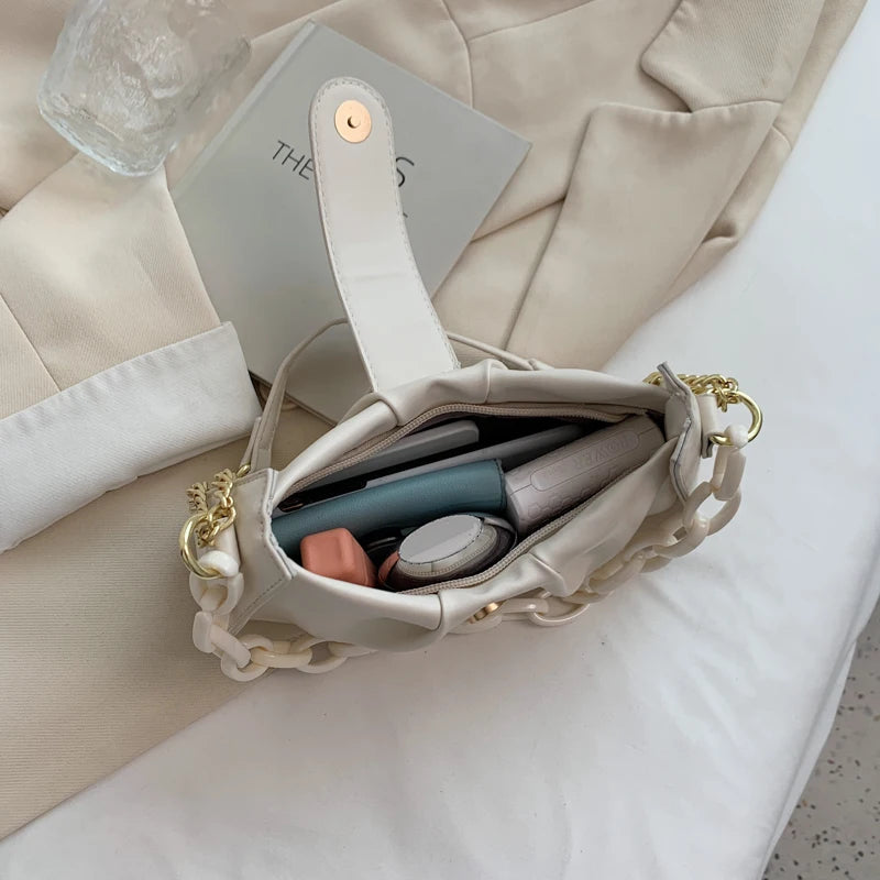 Small Chain Shoulder Bags for Women Pleated Crossbody Tote Handbags