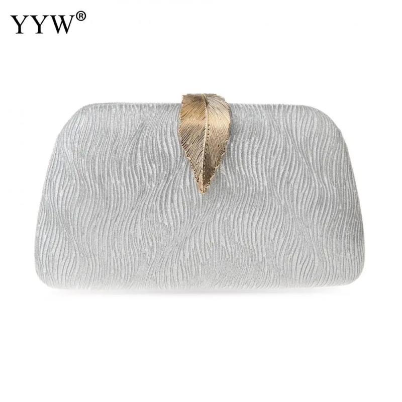 Elegant evening bag with leaves clasp, perfect for weddings, parties, and formal events. Can be worn as a clutch, crossbody, or shoulder bag.