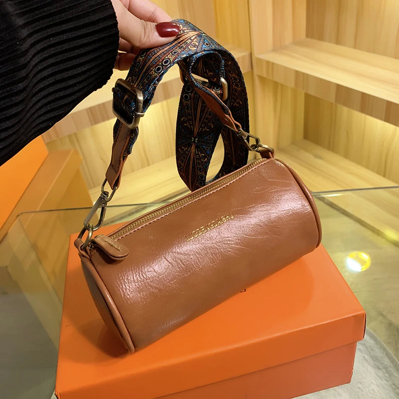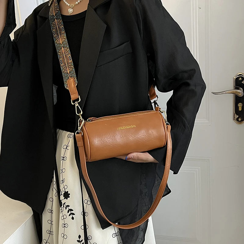 Small Crossbody Bags for Women Handbags 2 Straps Barrel Purse PU Leather