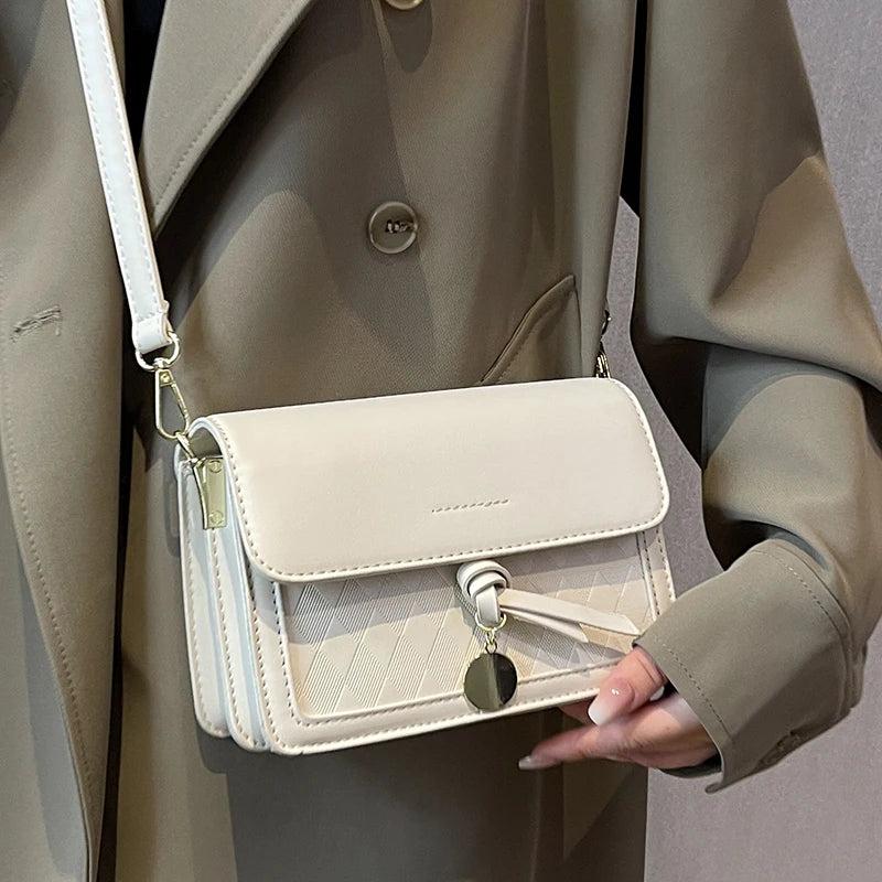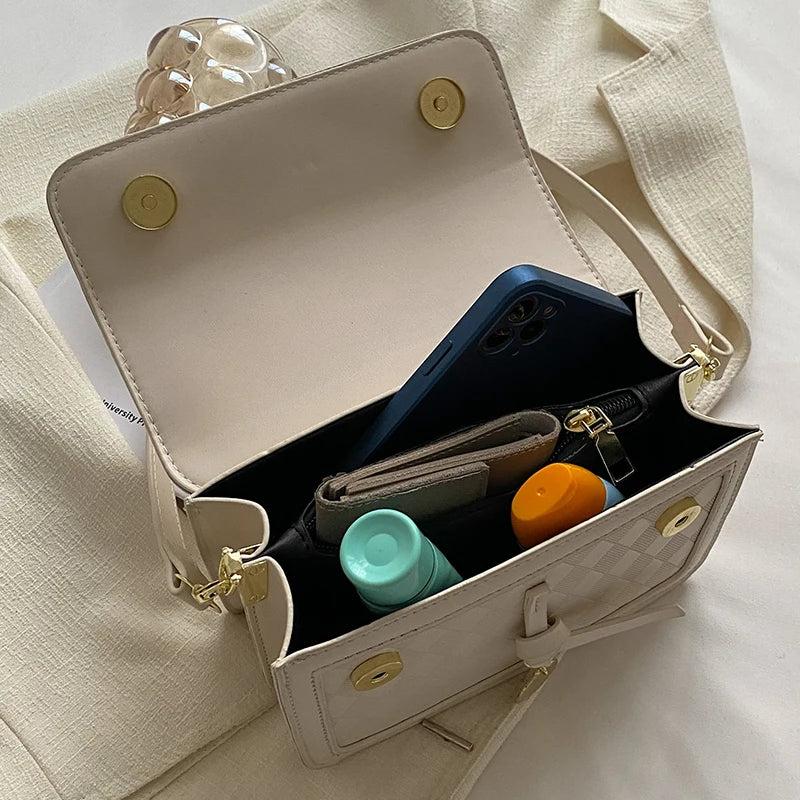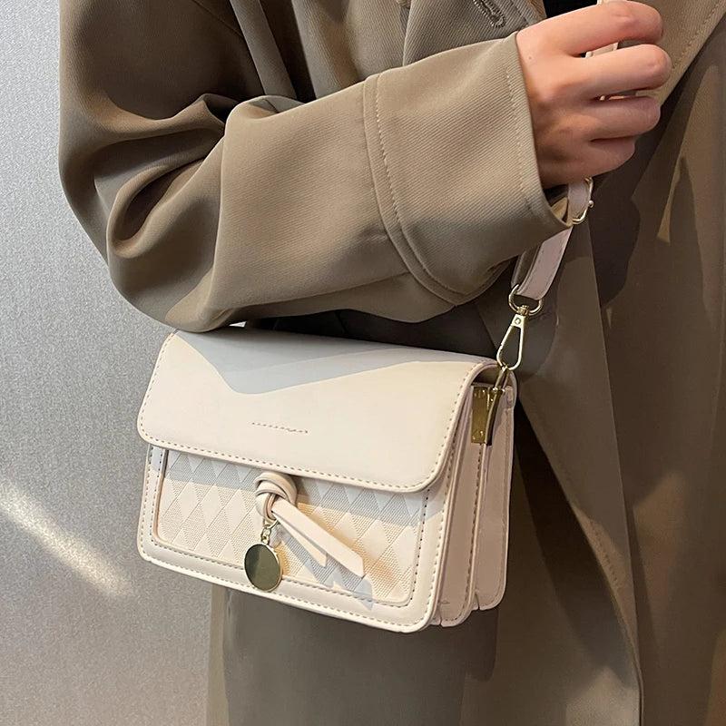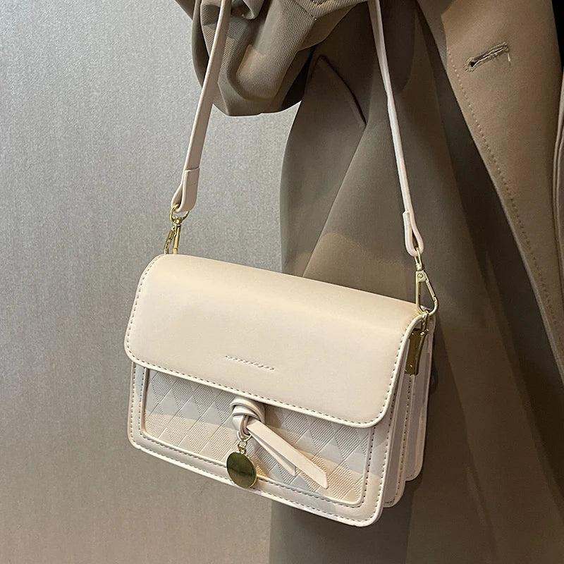 This classic small handbag features a beige design with lozenge prints, perfect for casual outings. The shoulder bag is ideal for everyday use and adds a touch of elegance to your ensemble.