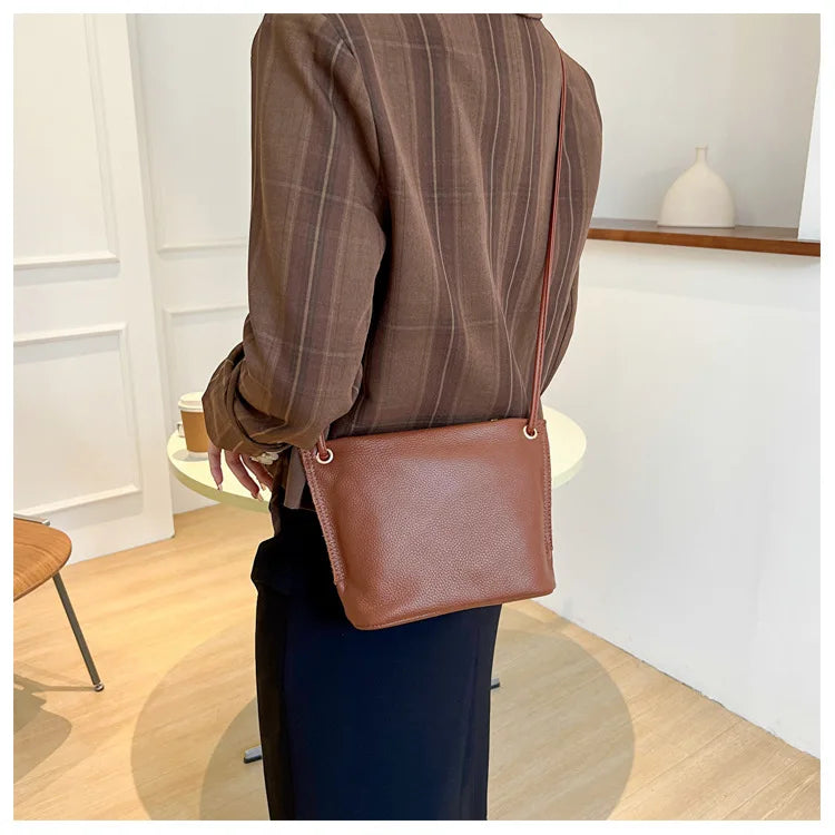 Small Leather Crossbody Bag for Women Solid Bucket Messenger Purse