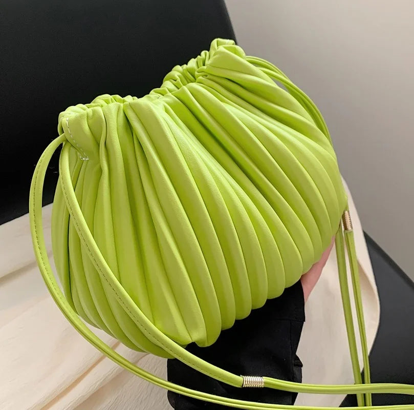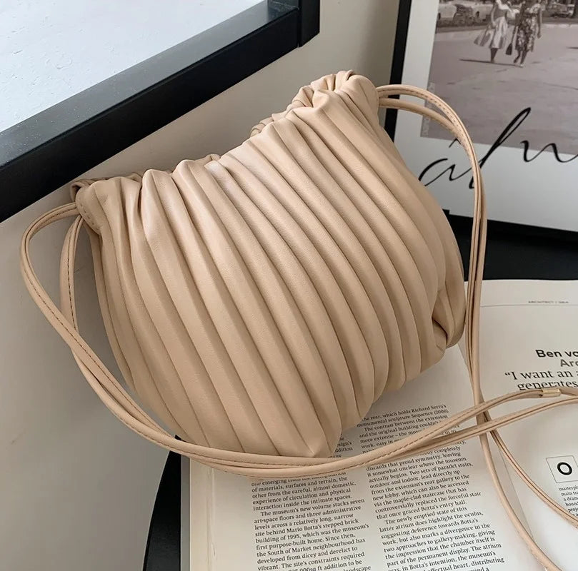 This high-quality women's shoulder bag is made of premium leather. It features a small size, perfect for carrying essentials. The bucket bag design adds a stylish touch to any outfit.