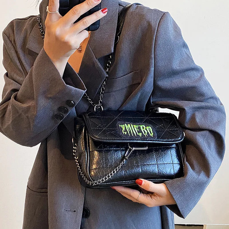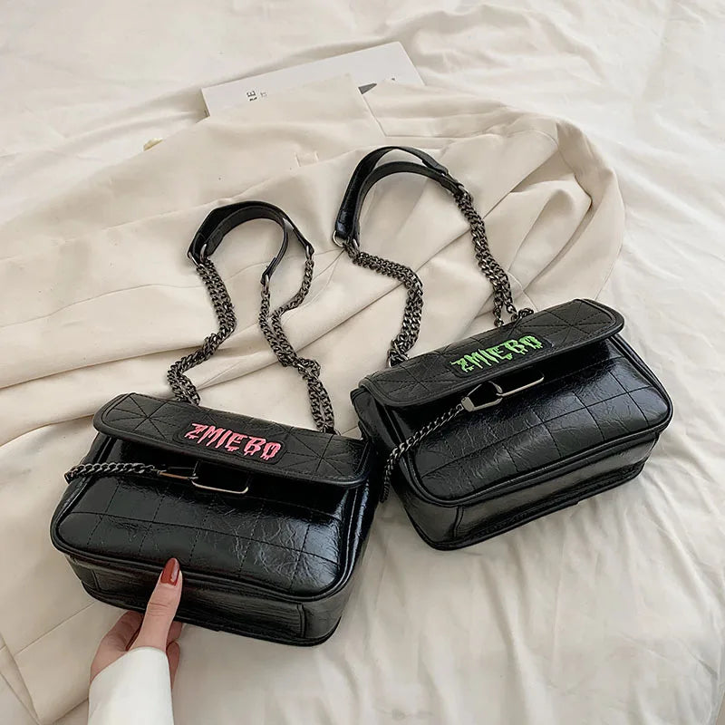 Elevate your look with this Y2K style metallic crossbody bag featuring a top handle and quilted design. Perfect for adding a touch of glam to any outfit.