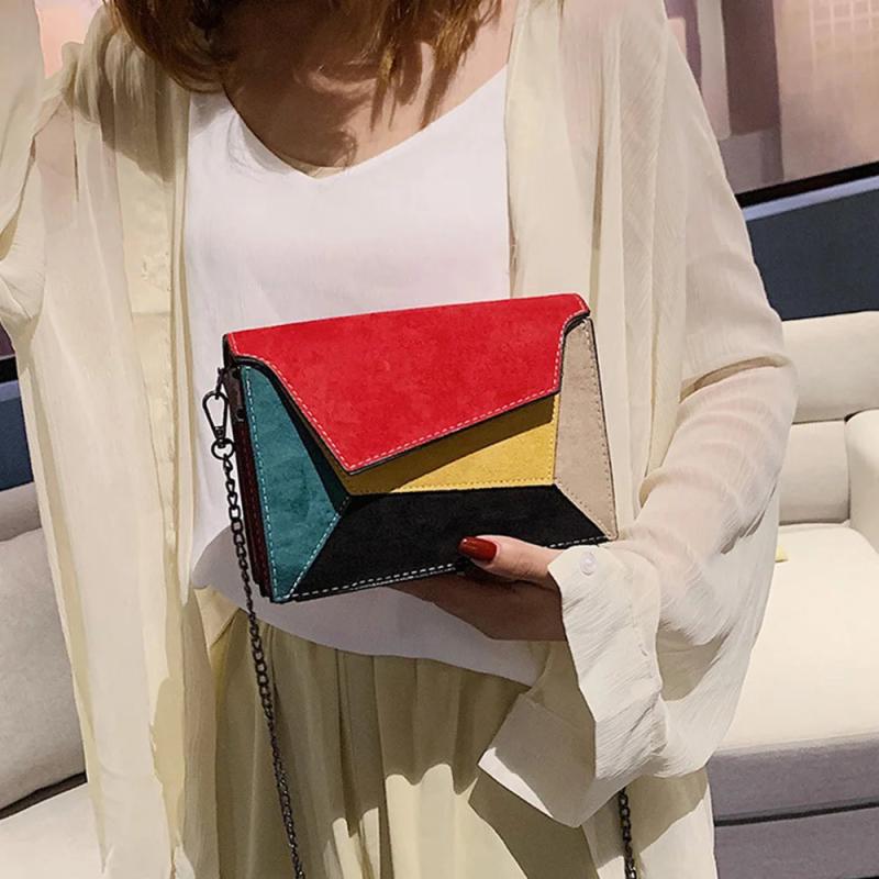 Elegant and stylish small handbag perfect for any occasion. Features panelled design and includes a chain strap for crossbody wear.
