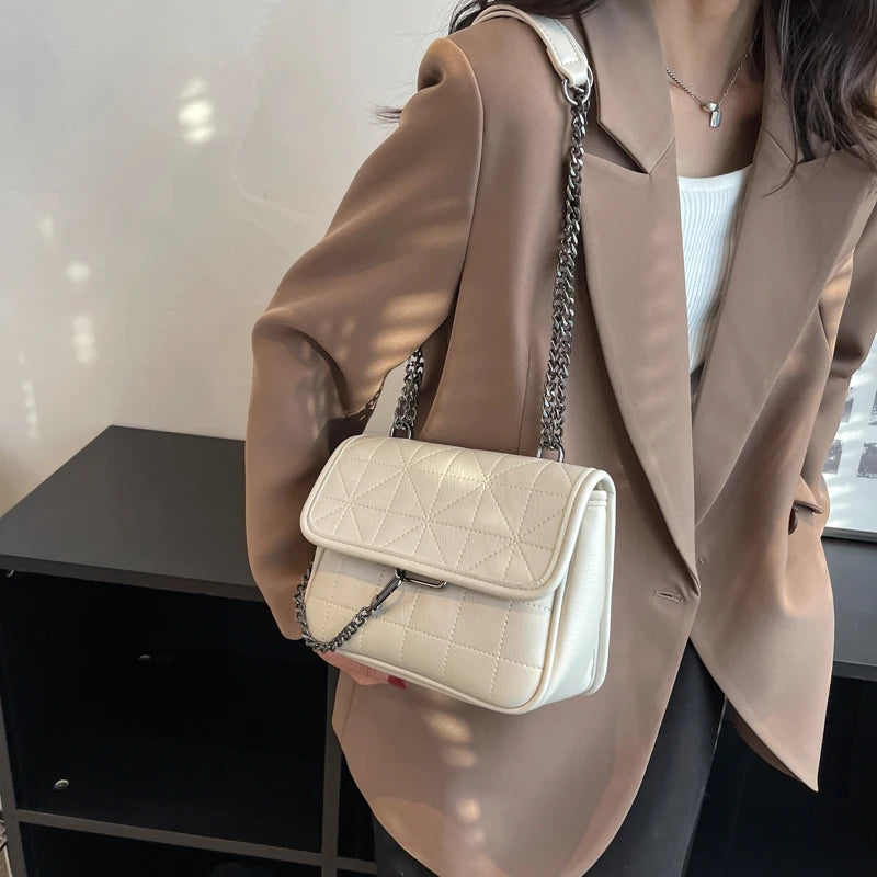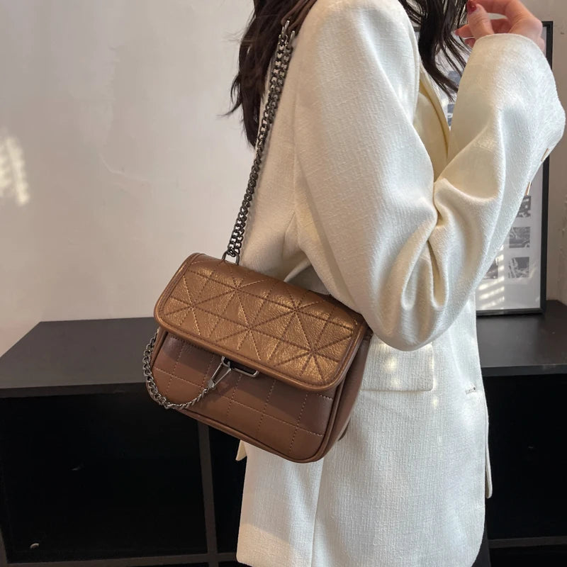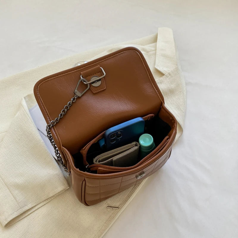 This small shoulder bag is perfect for women on the go. Made of high-quality PU leather, it features a chain strap and can be used as a tote or crossbody bag.