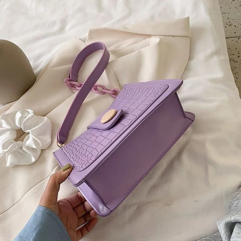 Small PU Leather Shoulder Bag Chain Handbag Crossbody Solid Color