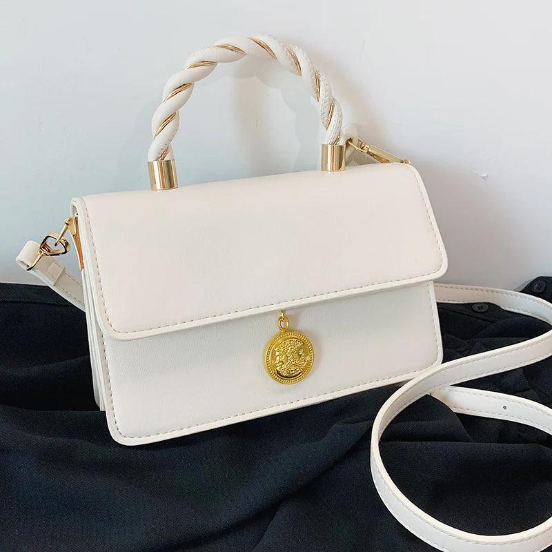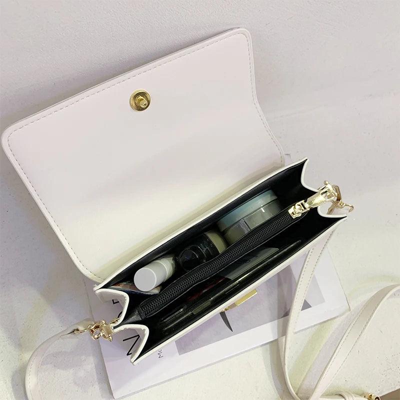 Small PU Leather Shoulder Bags for Women Square Messenger Bag Solid Flap