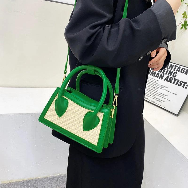 Small Straw Hourglass Handbag Top-Handle Tote Women Shoulder Messenger Bag