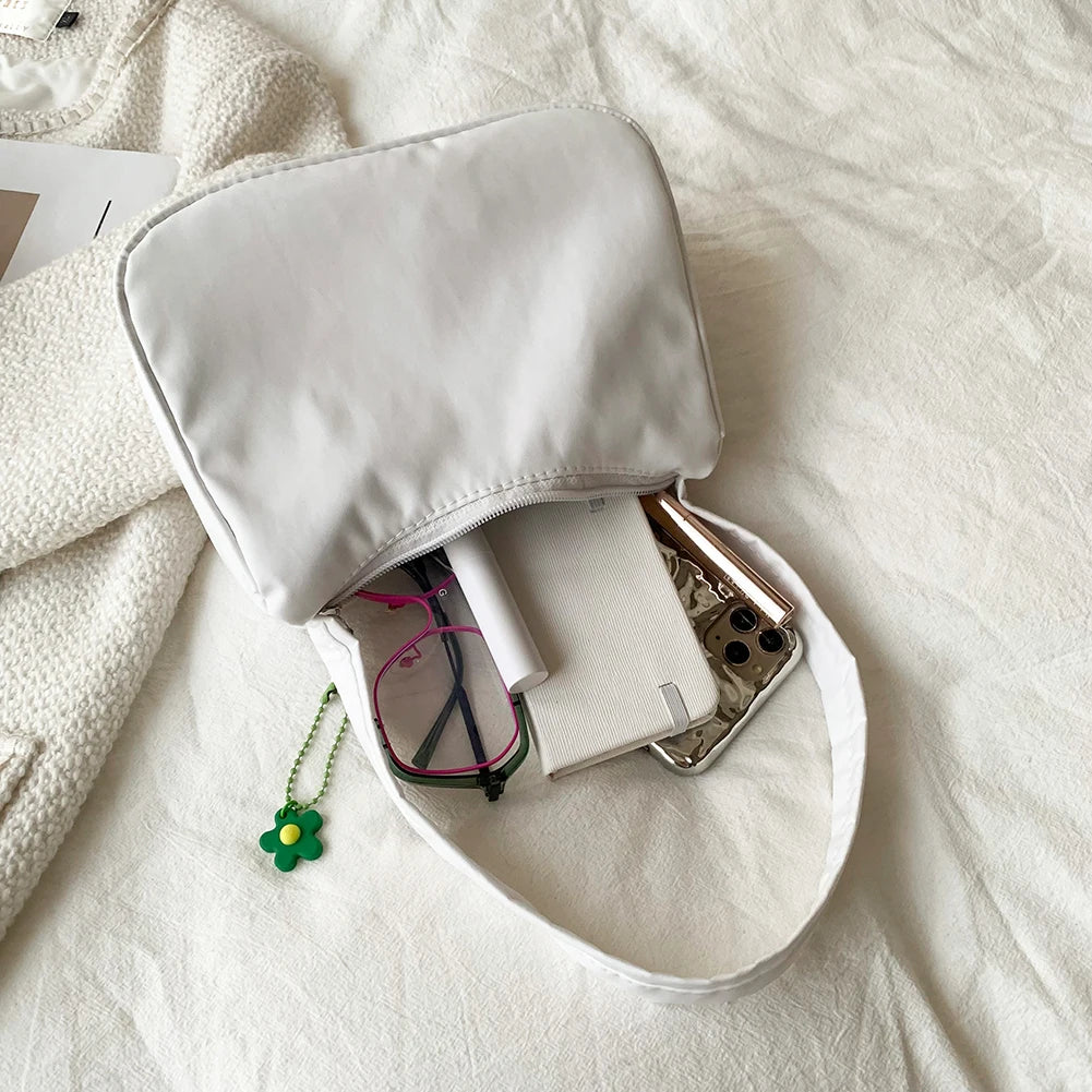 Small Underarm Nylon Shoulder Bag with Flower Pendant