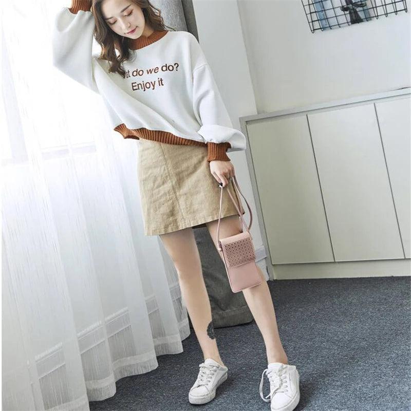 This small women handbag features a transparent touch screen cell phone bag made of PU leather. Perfect for carrying your essentials while easily accessing your phone.