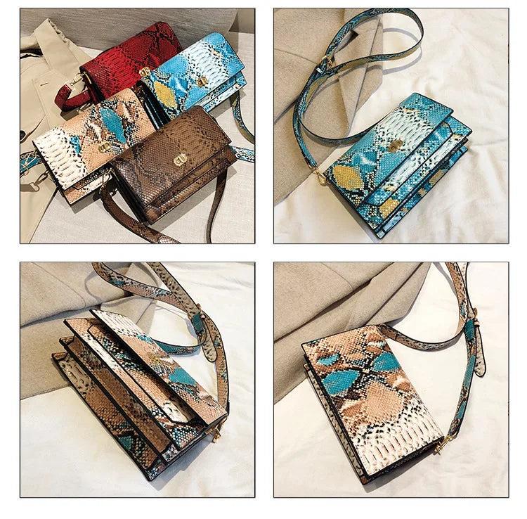 Snake Pattern Flap Bag PU Leather Wide Strap Sling Shoulder Crossbody Bag