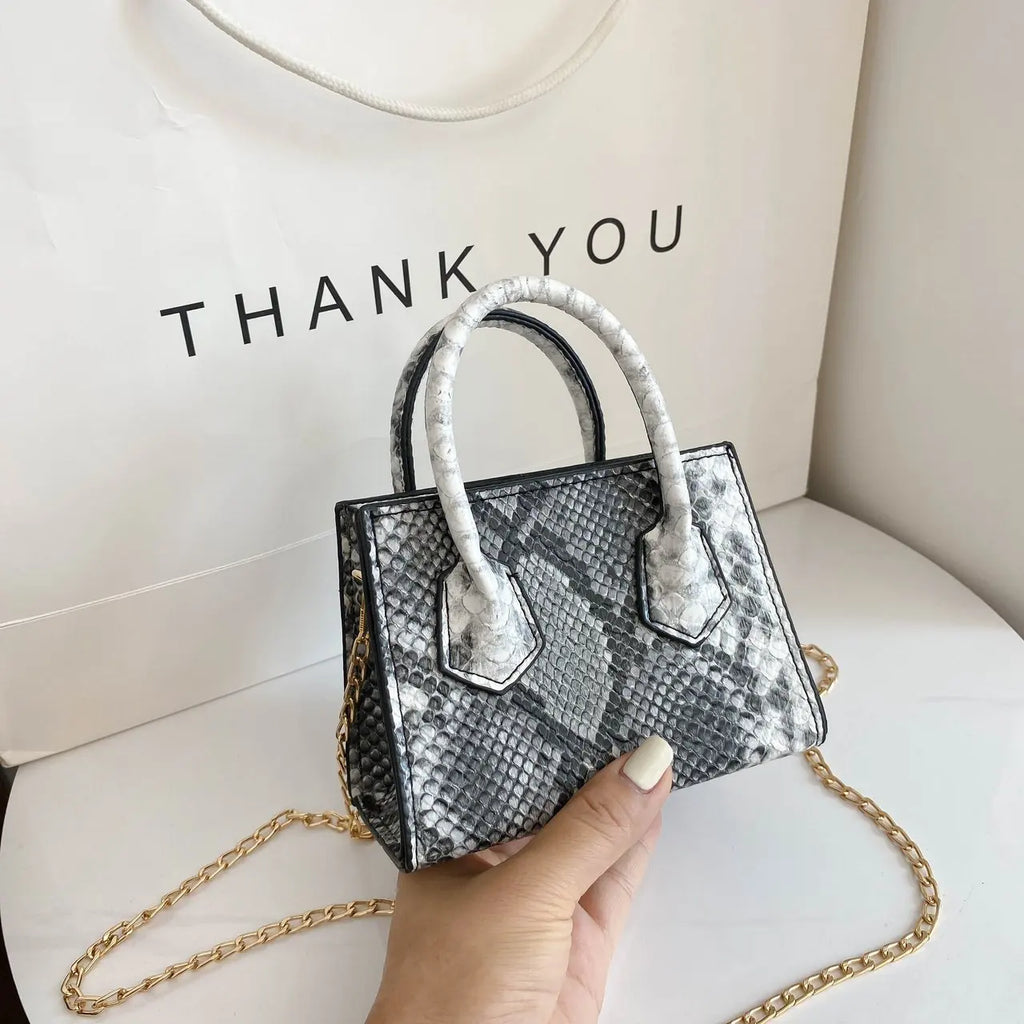 Snake Print Shoulder Bag Crossbody Handle Chain Bag Vintage Wild
