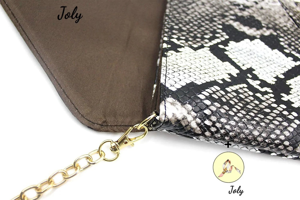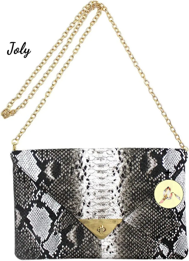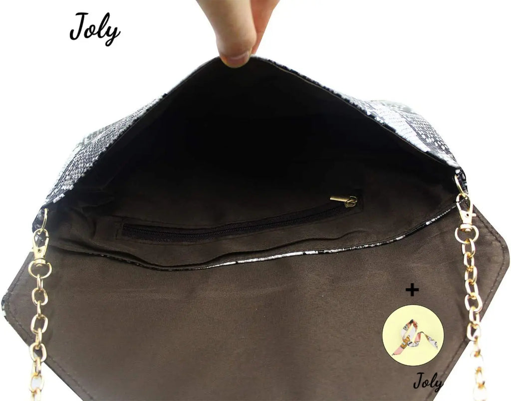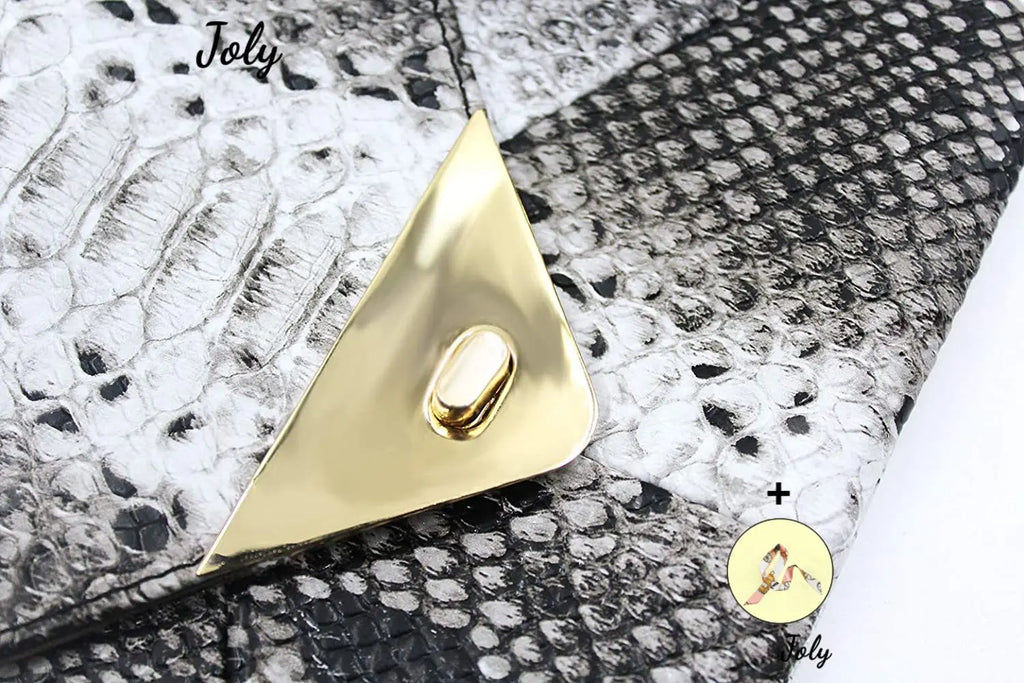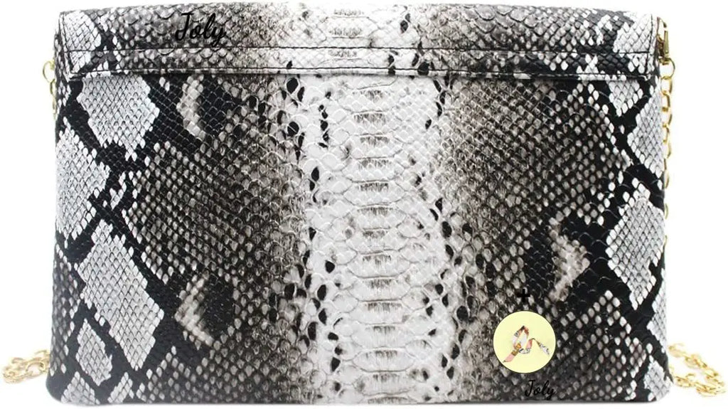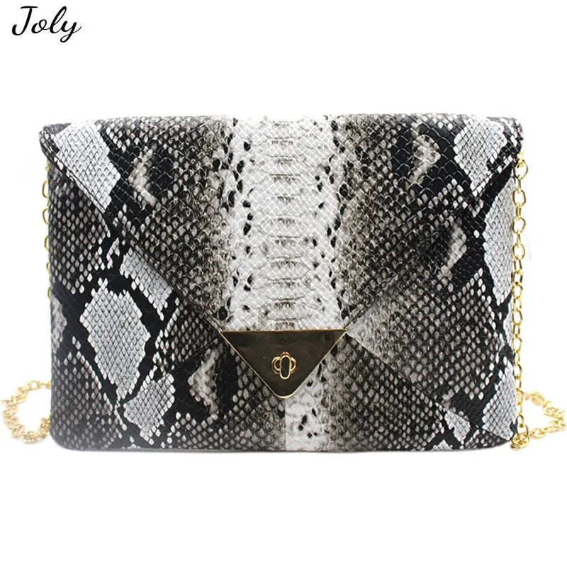 Snakeskin Envelop Clutch Handbag with Chain Strap