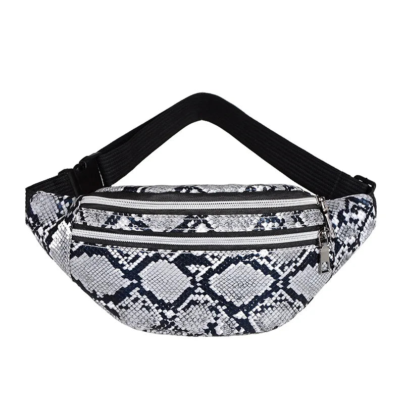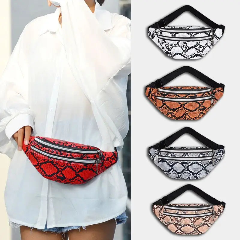 Snakeskin Waist Bag Fanny Pack Running Belt Pouch PU Chest Bag