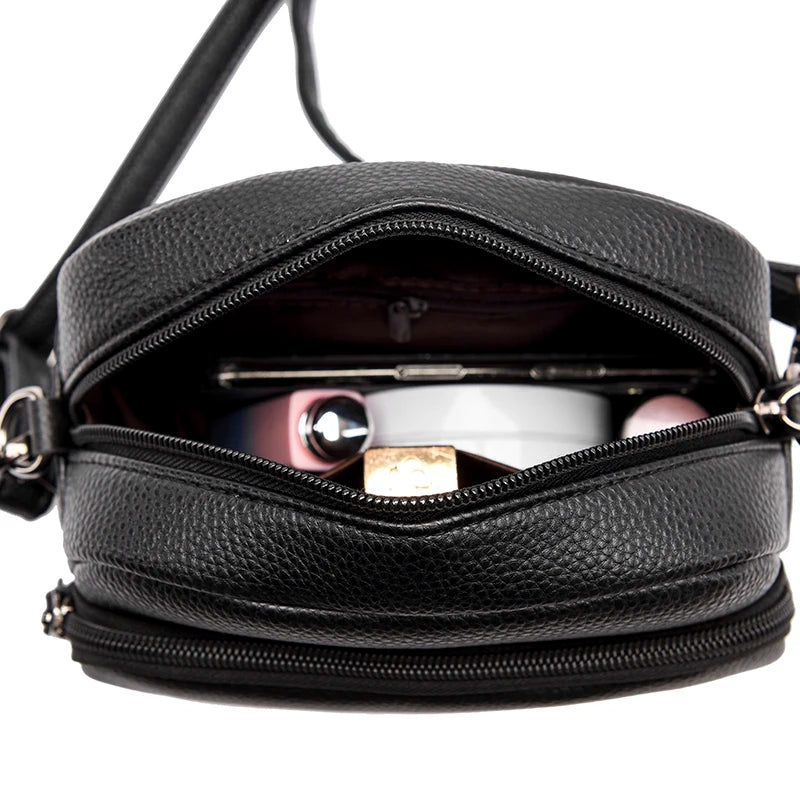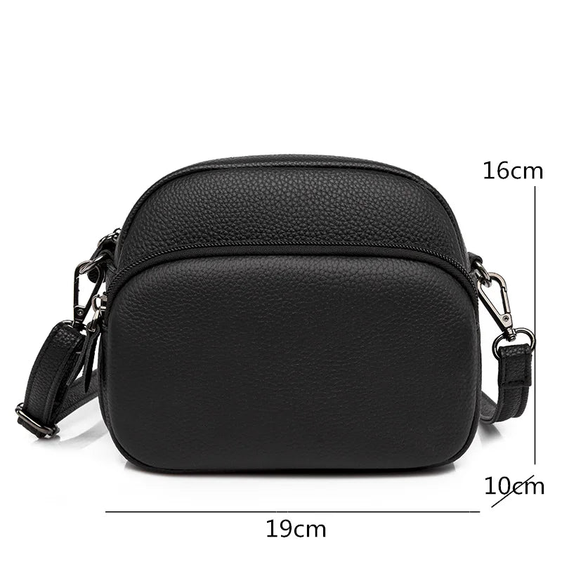 Soft Cow Leather Small Shoulder Bags Women Double Zipper Messenger Bag