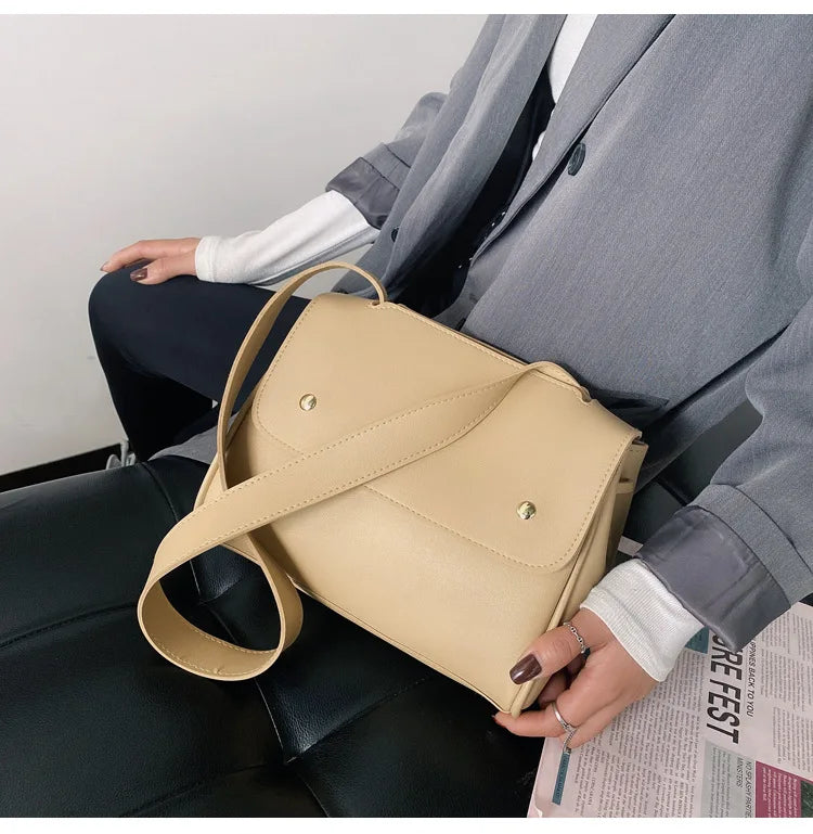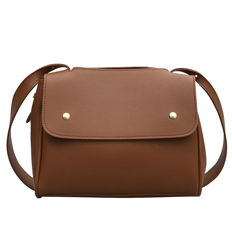This casual women's handbag is crafted from soft material with a solid design. It features a single strap for convenient crossbody wear. The bag has a zipper and hasp closure to keep your belongings secure.