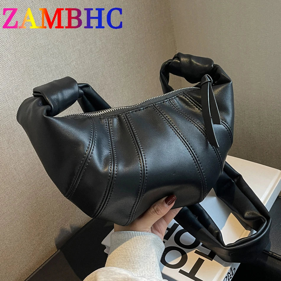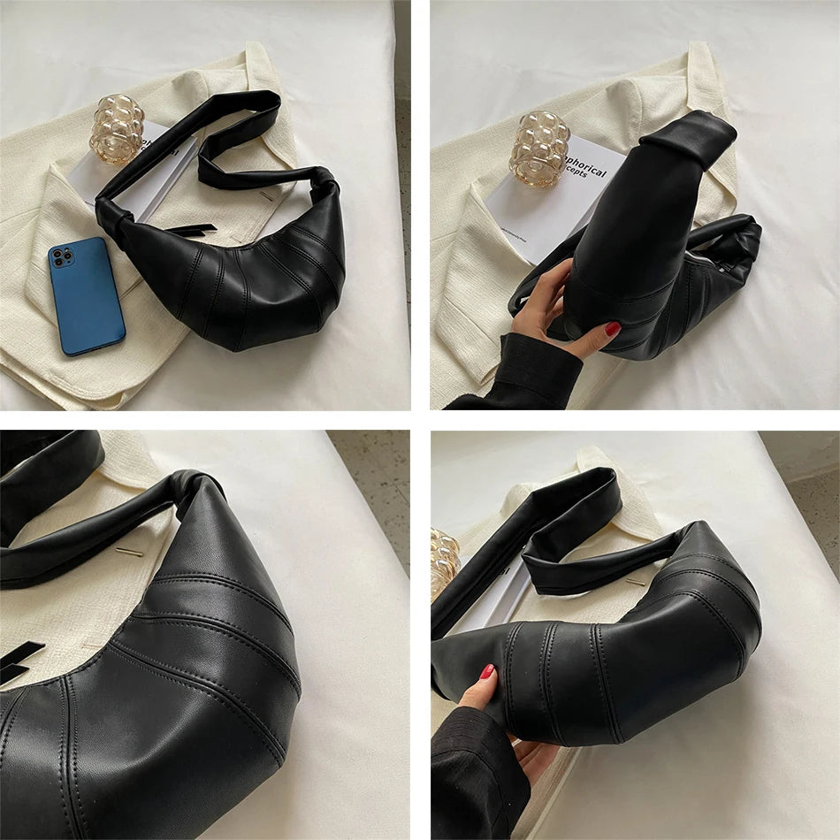 Soft Leather Half Moon Crossbody Bag for Women