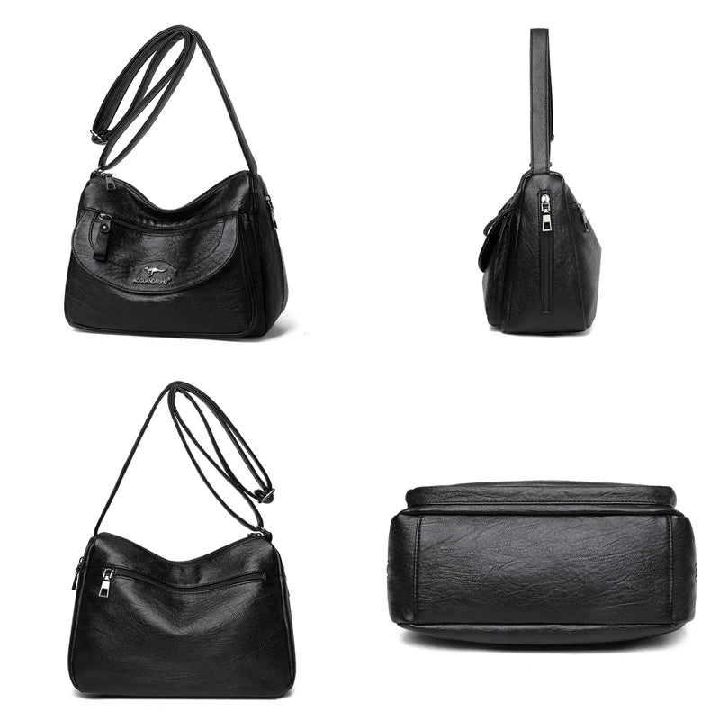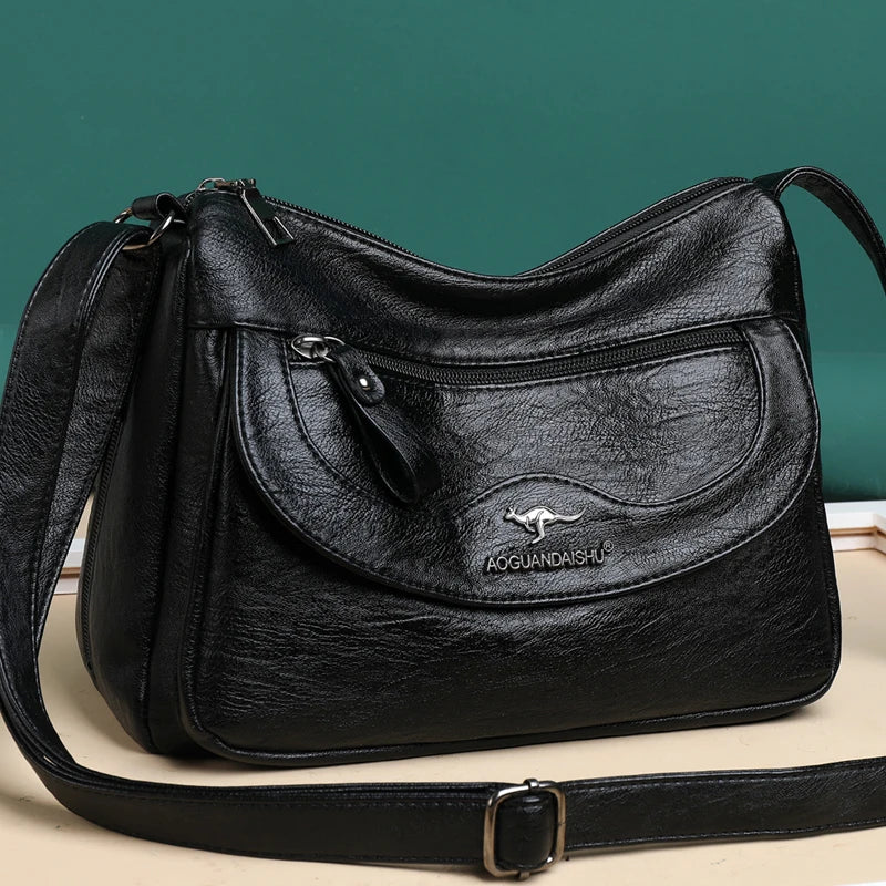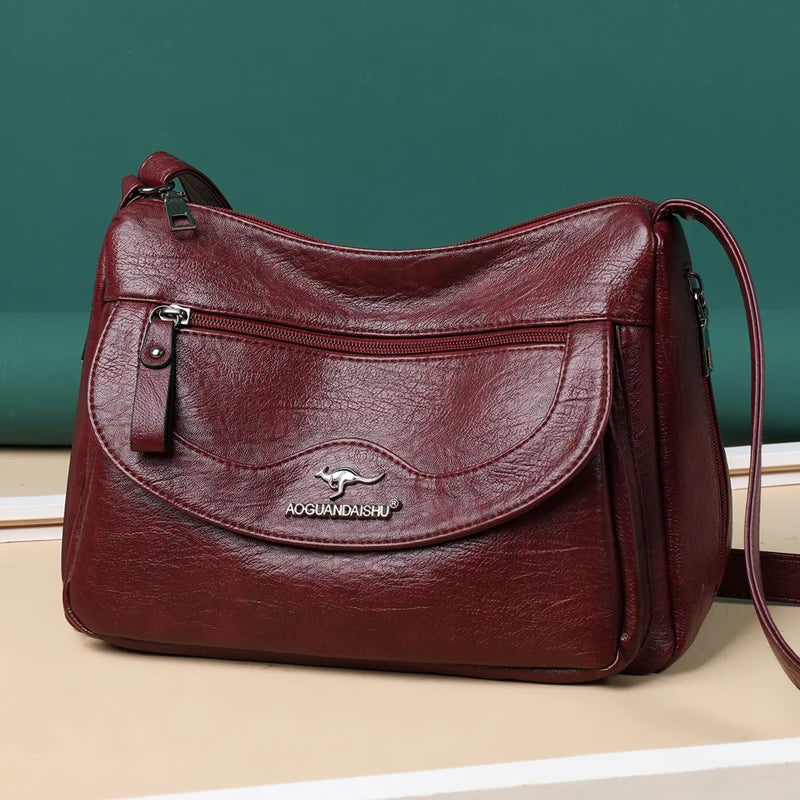 Elegant soft leather messenger bag for women, perfect for everyday use. Features a spacious interior with multiple pockets for organization. Can be worn as a shoulder bag or crossbody. Available in various colors to suit your style.