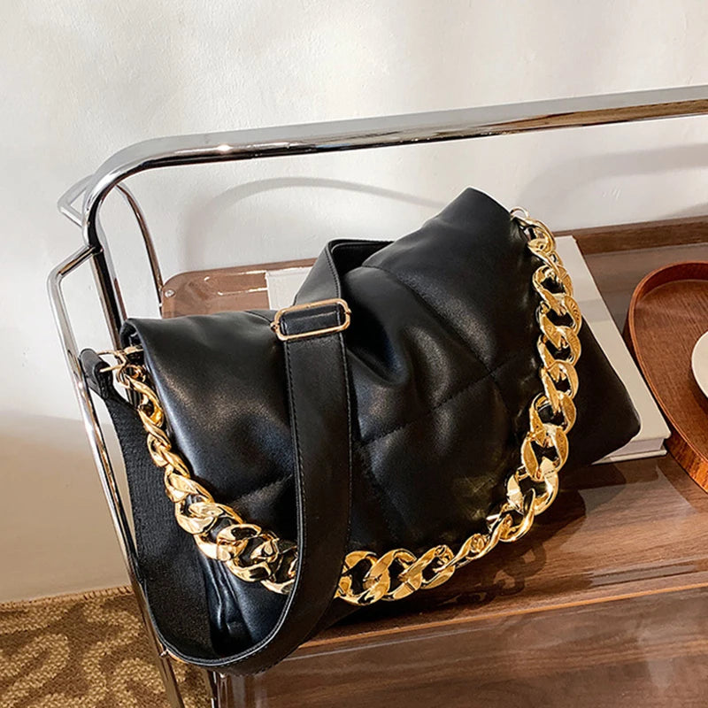 Soft Leather Messenger Bag with Thick Chains Crossbody Bag Down Handbag