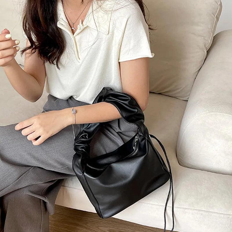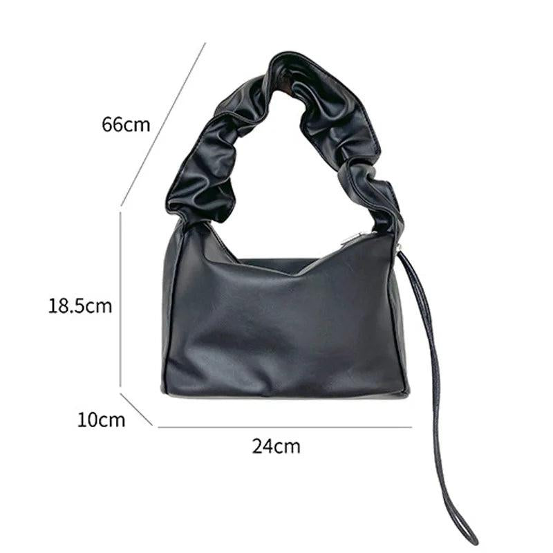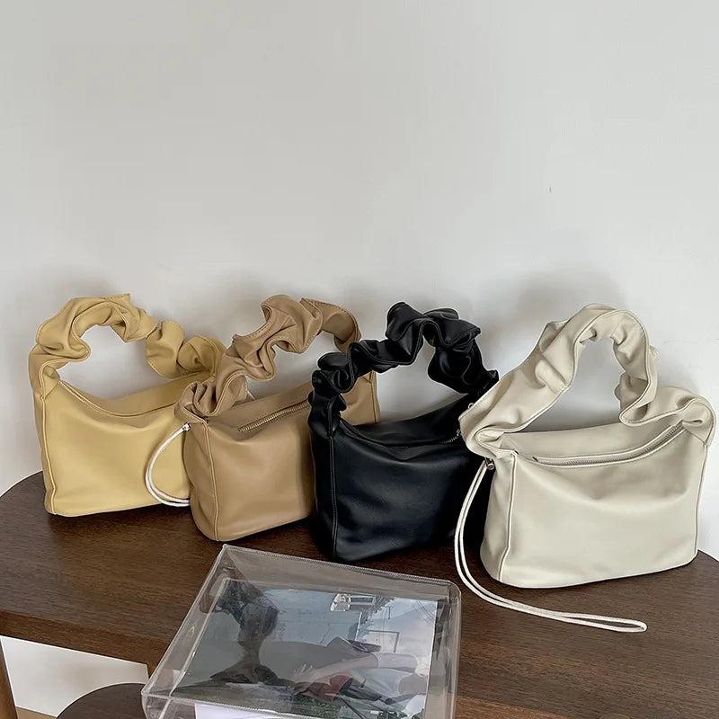 Soft Leather Shoulder Bag Pleated Underarm Zipper Handbag
