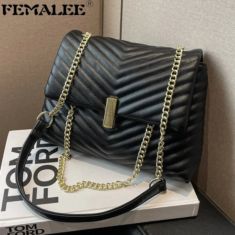 Soft Leather Shoulder Bag V Striped Crossbody Handbag Messenger