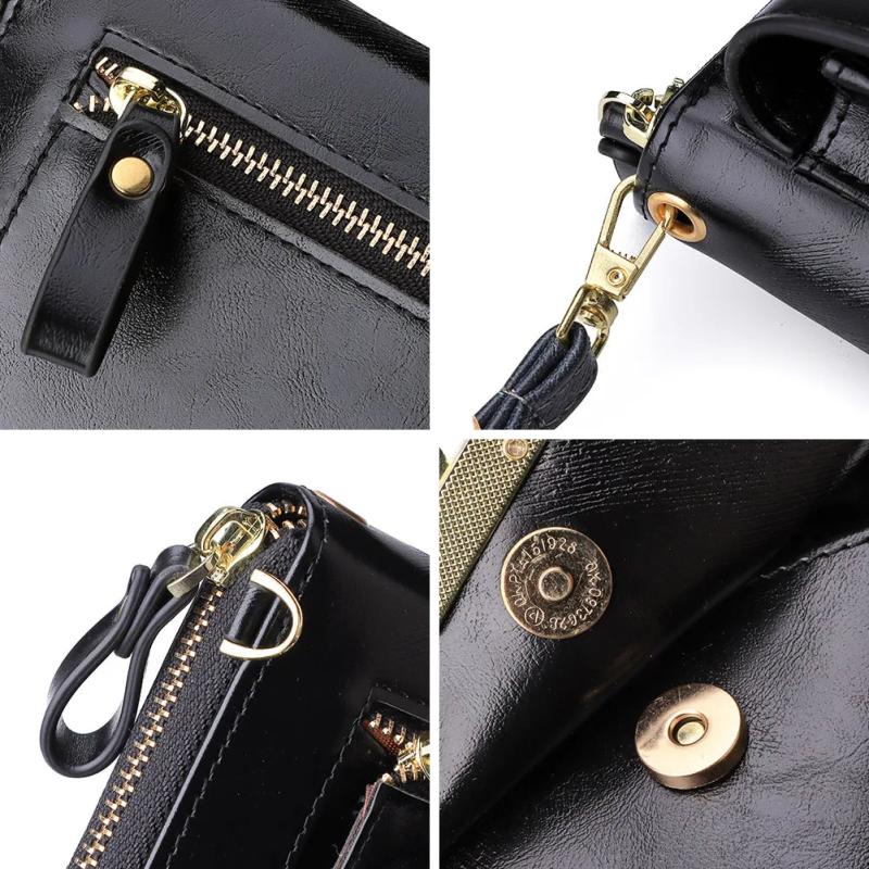 Soft Leather Shoulder Bag Wallet with Cell Phone Pocket