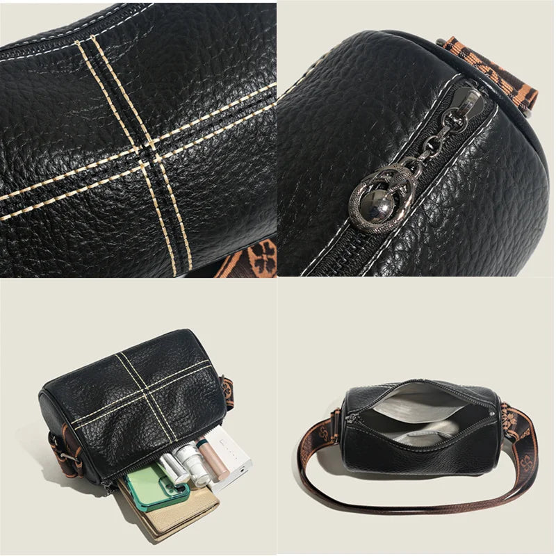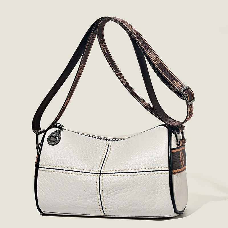 This women's handbag is made of high-quality solid cow leather, featuring a wide strap for comfortable wear. It can be used as a shoulder bag or crossbody bag, perfect for daily use. The bag has a high-end and stylish design, ideal for ladies who appreciate quality and fashion.