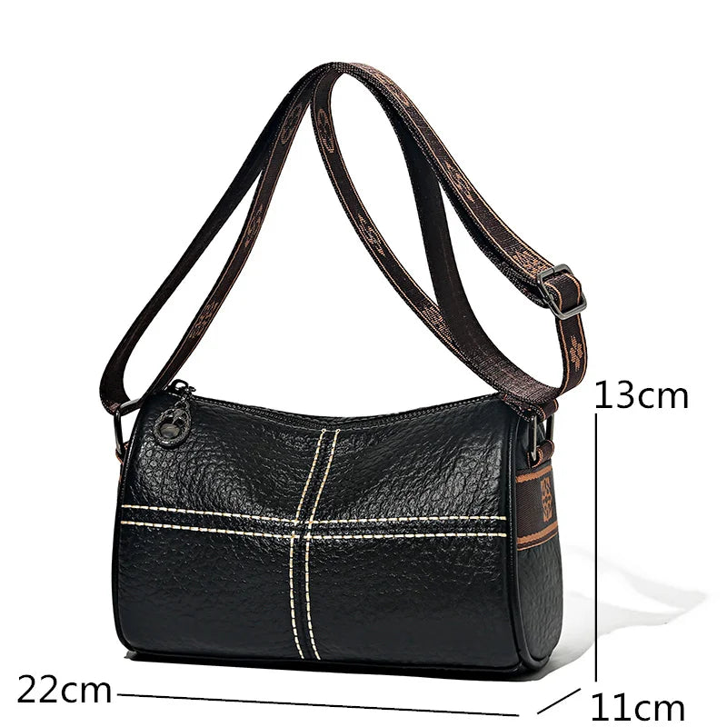 Soft Leather Women's Handbag Wide Strap Shoulder Bag Crossbody Tote