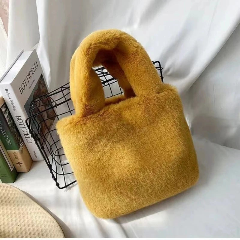 Stay warm and stylish with this fluffy tote bag perfect for parties or everyday use. Made of soft plush faux fur, this hand bag is a winter essential.