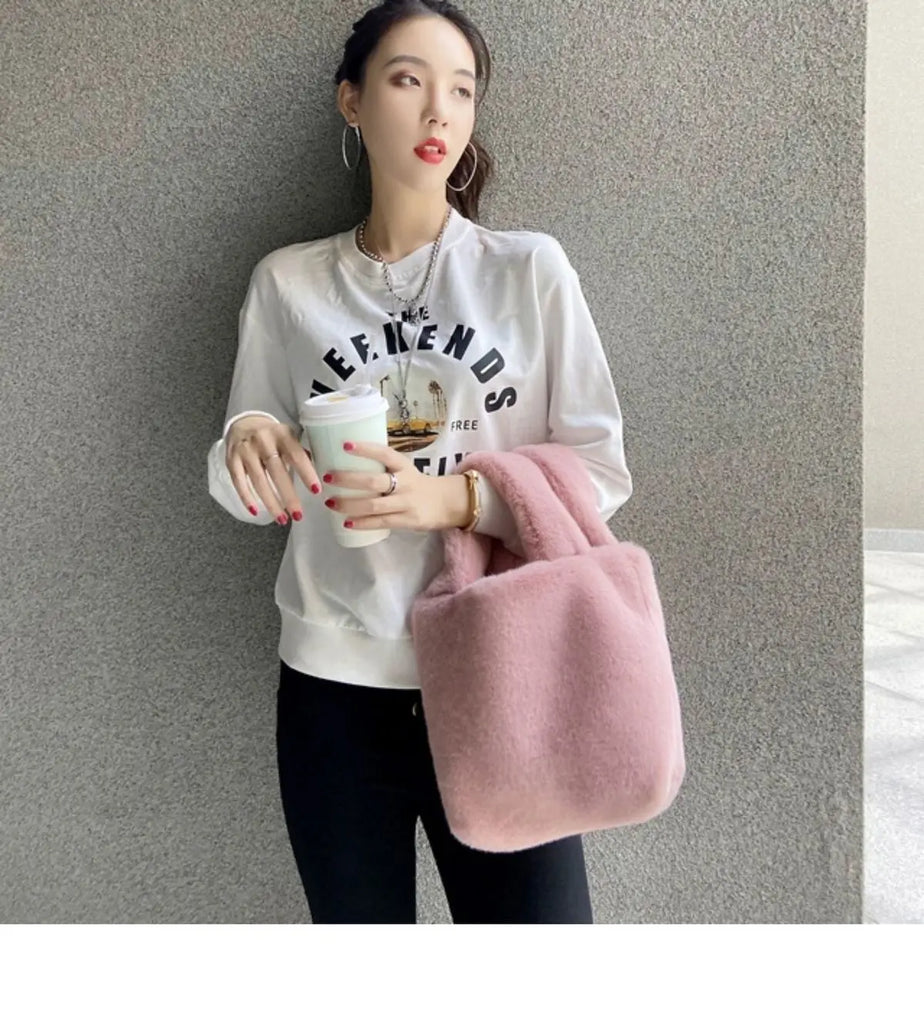 Soft Plush Hand Bag Faux Fur Shopper Bags Winter Travel Bag